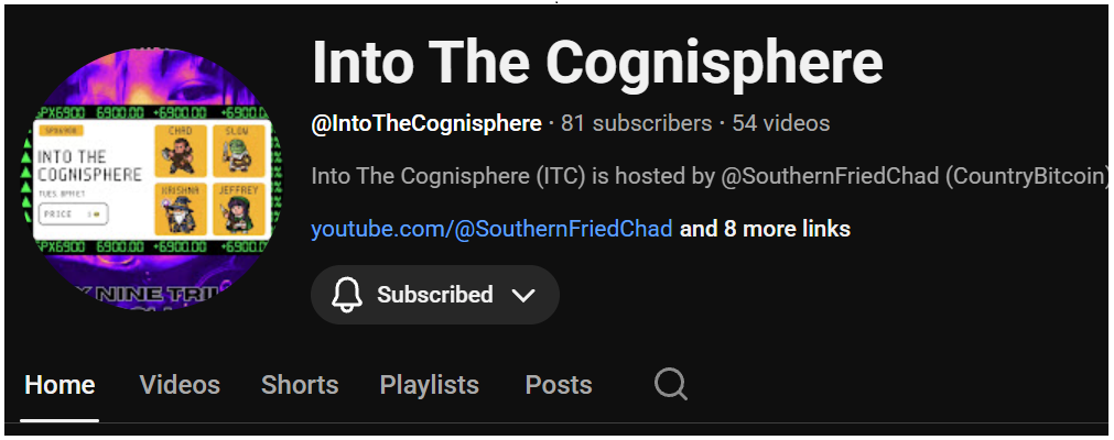 Into the Cognisphere ist ein Long-Form-Roundtable-Format auf YouTube, moderiert von SouthernFriedChad, mit vier festen Kernmitgliedern: SouthernFriedChad, Krishna, JeffreyBanks und Slow.